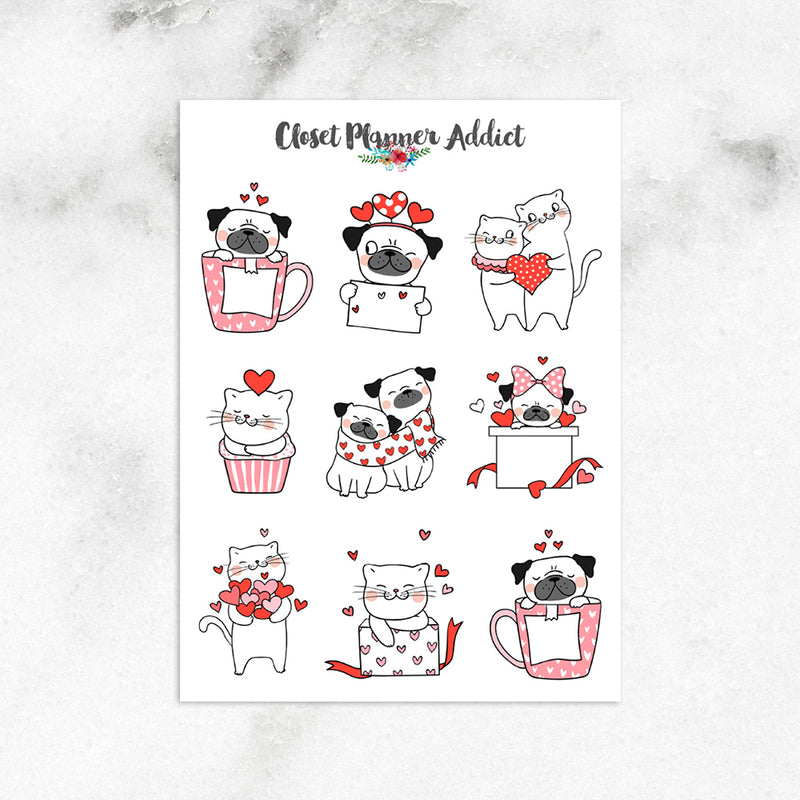 Valentine's Day Dogs and Cats Planner Stickers (S-380)