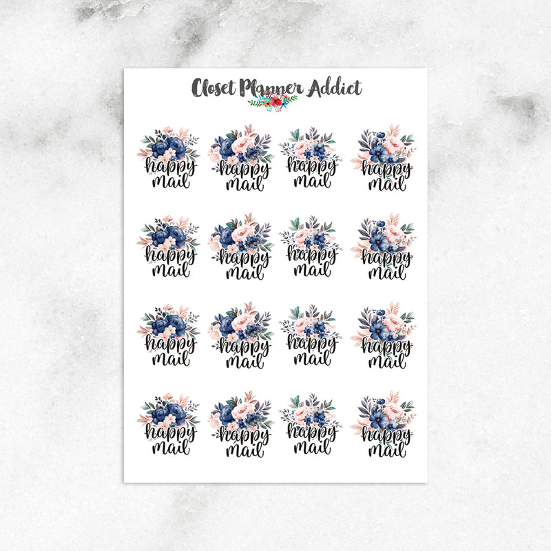 - Sticker sheet version Happy Mail contains 16 stickers. Each sticker measures approximately 1.8 cm wide.