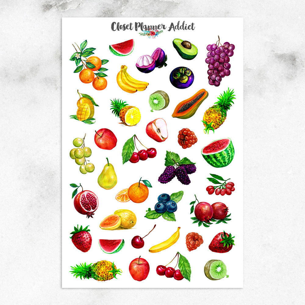 A collection of beautiful watercolour fruits planner stickers for your planner!