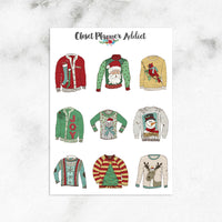 Ugly Christmas Sweaters Planner Stickers (S-356)