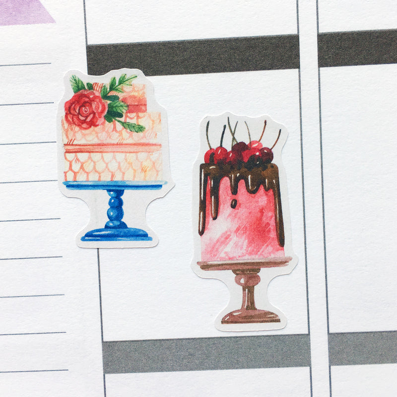 A collection of beautiful watercolour wedding/birthday cakes planner stickers for your planner!