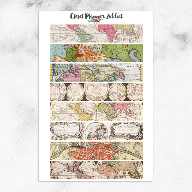 Vintage Maps Planner Stickers And Washi Strips (S-479)