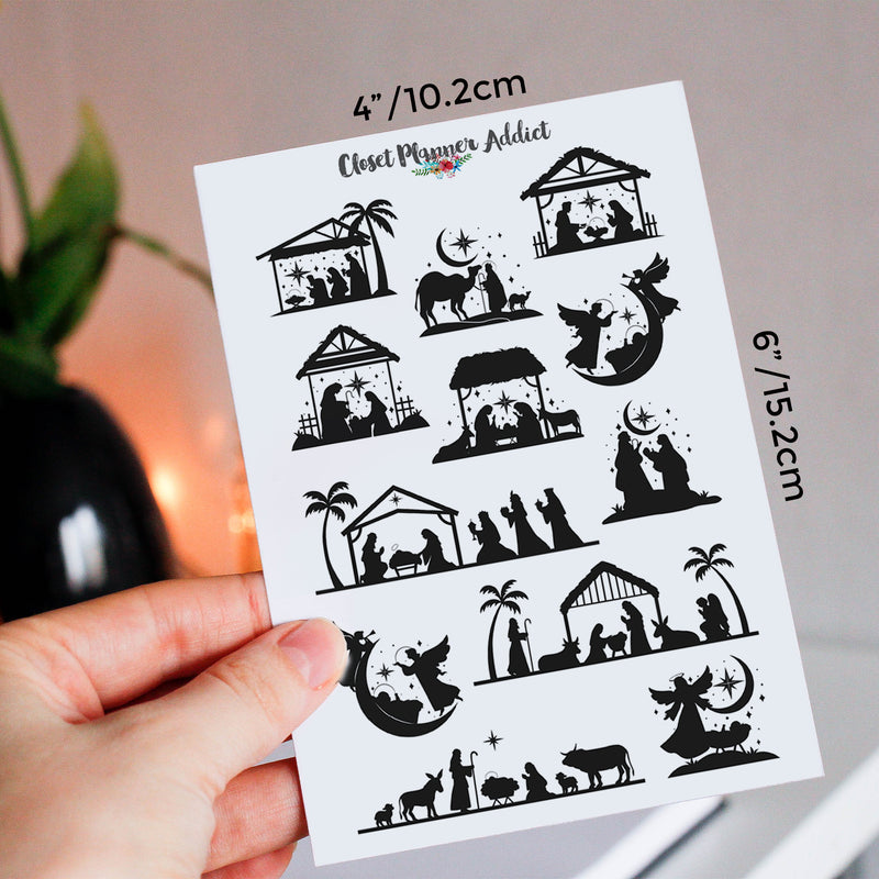 Christmas Nativity Scenes Silhouettes Planner Stickers (S-702)